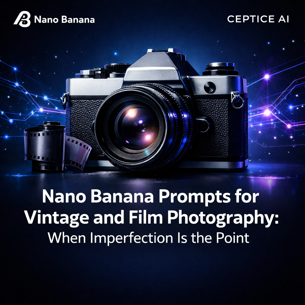 Vintage and film photography is the photography of imperfection chosen deliberately — the grain that proves presence, the color cast that places an image in a specific time, the chemical bloom that reminds us that images were once made by light touching chemistry rather than light touching silicon. Your Nano Banana Prompts need to understand these imperfections technically and embrace them intentionally: name the specific film, describe its specific color and grain characteristics, use period-accurate content and camera systems, and include the physical artifact references that distinguish a genuine analog photograph from a digital image wearing a costume. The imperfection is the authenticity. Embrace it precisely.